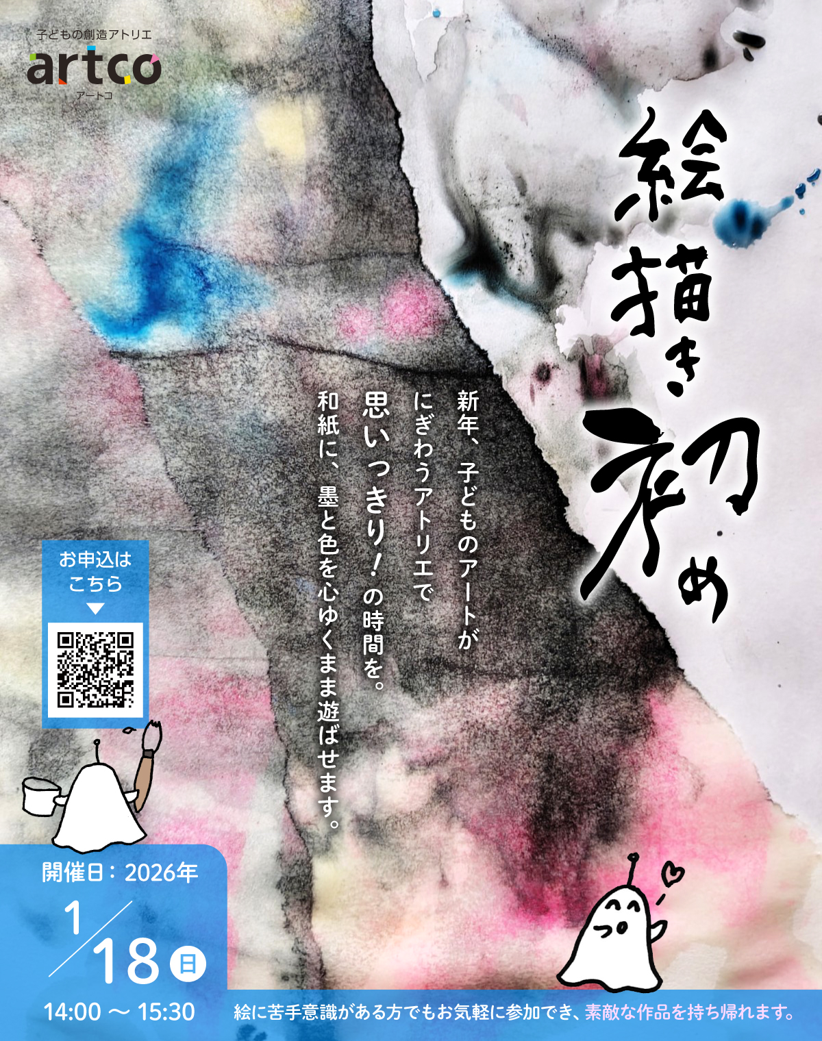 新年、子どものアートがにぎわうアトリエで